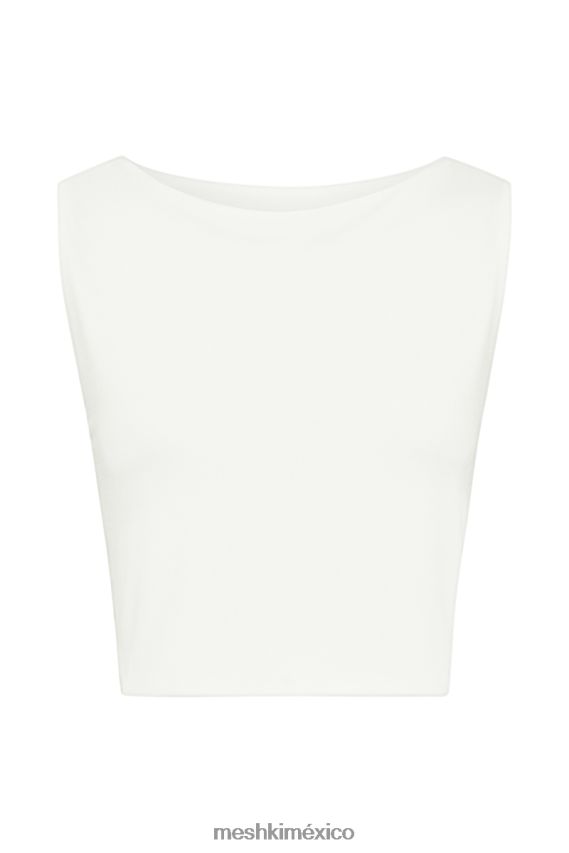 el suri es una blusa sin mangas con cuello barco y espalda baja y abierta enmarcada por un escote vuelto. el frente luce un aspecto limpio y atemporal: color sólido, líneas definidas y un dobladillo ligeramente recortado. Los tirantes anchos y el escote alto enfatizan lo cubierto que está el frente y lo desnuda que está la espalda en contraste. El escote holgado en la parte posterior desciende hasta alrededor de la cintura y la parte baja de la espalda, creando una silueta abierta que es a la vez liberadora y favorecedora. combínalo con la falda larga ceñida suri con herrajes para obtener un conjunto que juega maravillosamente con el contraste visual.
