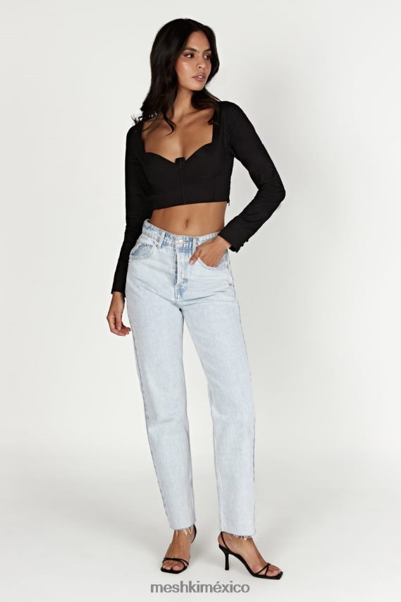 esté a la altura de las circunstancias con la camisa corsé de zahara. De largo corto, zahara presenta detalles con aros para un acabado que favorece el busto y refuerzos para acentuar tu cintura. Está diseñada con una confección de algodón elástico para mayor comodidad y con mangas largas para que puedas disfrutar de la noche. la estamos diseñando con nuestros característicos pantalones de piel sintética de pierna ancha Tyra o denim meshki para un conjunto perfecto y listo para la fiesta.