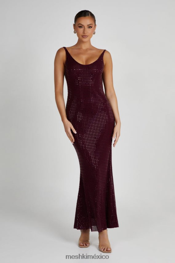 Meshki Pam Square Diamante Maxi Dress Berry Clothing H48F8H128