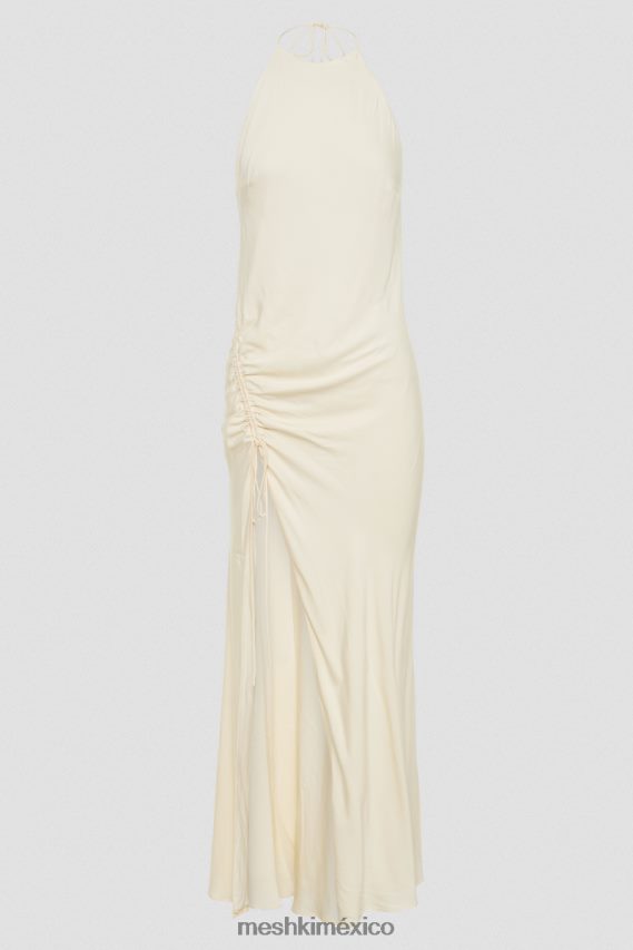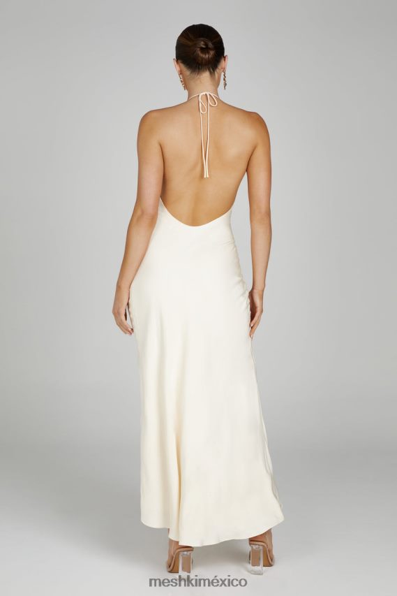POLLY is an unlined sleeveless halter maxi dress with a self-tie, racer-neck neckline and a thigh-high skirt slit. Its bias-cut rayon viscose fabrication with 100% viscose lining is soft, seamless, and curve-hugging, creating a smooth and sleek silhouette. No zipper necessary; simply slip it on and it will fall into place. Self-adjustable ruching around the right hip and upper leg area adds visual texture to the otherwise plain, flawless material. A versatile number that works for either day or night wear, Polly goes well with most any shoe.