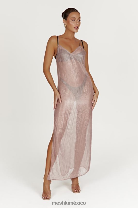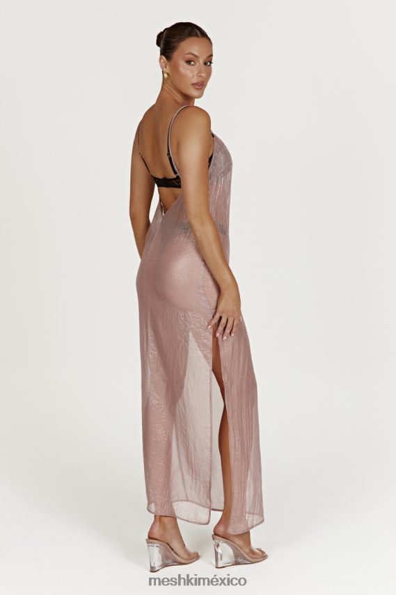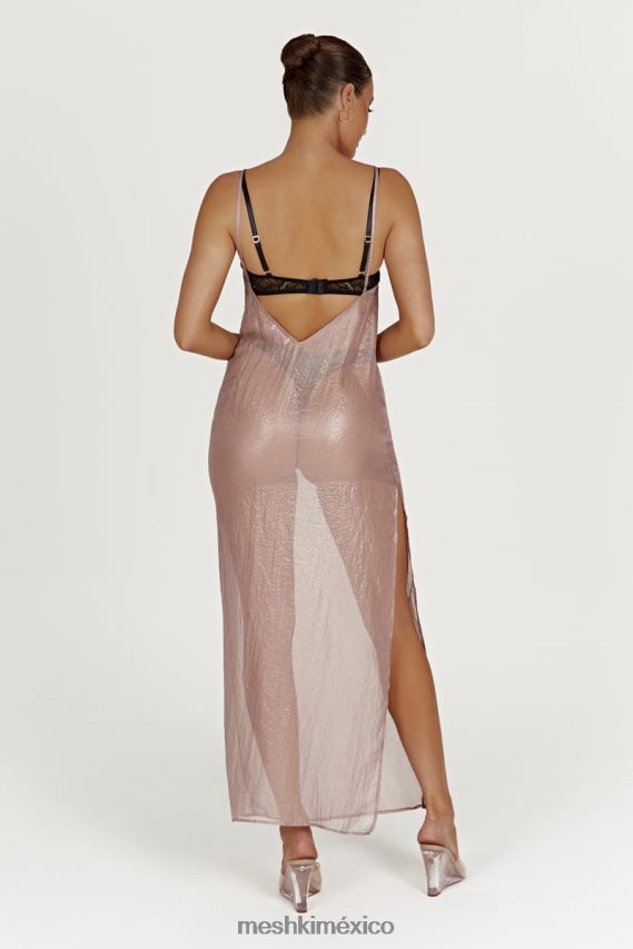 Meshki vestido largo phoebe transparente iridiscente gris pardo ropa H48F8H572