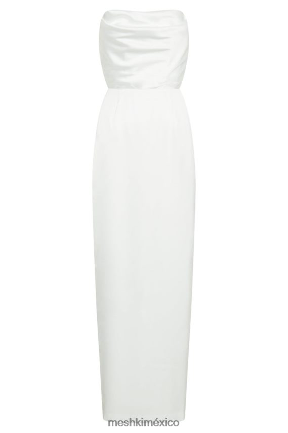 el vestido largo sin tirantes alanis invoca el glamour cinematográfico. está completamente forrado y tiene un romántico escote vuelto con un diseño sin tirantes. Confeccionado con una lujosa tela de satén, presenta deshuesados en el corpiño para darle un toque adicional de soporte. la cremallera invisible en el centro de la espalda crea un cierre oculto, mientras que la ventilación central en la espalda de la falda permite un movimiento adicional. Llévalo con nuestros tacones brandy con correa en el tobillo para completar el look.