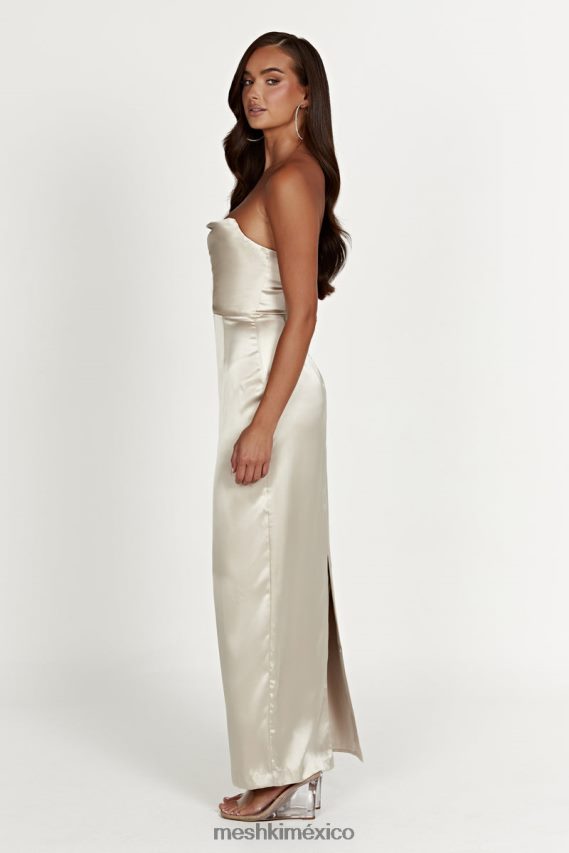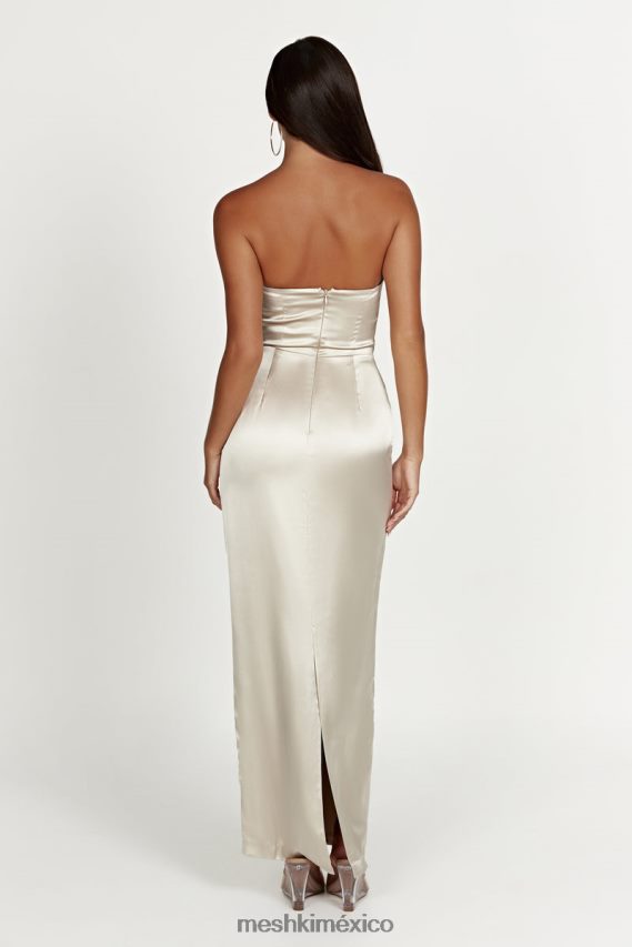 el vestido largo sin tirantes alanis invoca el glamour cinematográfico. está completamente forrado y tiene un romántico escote vuelto con un diseño sin tirantes. Confeccionado con una lujosa tela de satén, presenta deshuesados en el corpiño para darle un toque adicional de soporte. la cremallera invisible en el centro de la espalda crea un cierre oculto, mientras que la ventilación central en la espalda de la falda permite un movimiento adicional. Llévalo con nuestros tacones brandy con correa en el tobillo para completar el look.