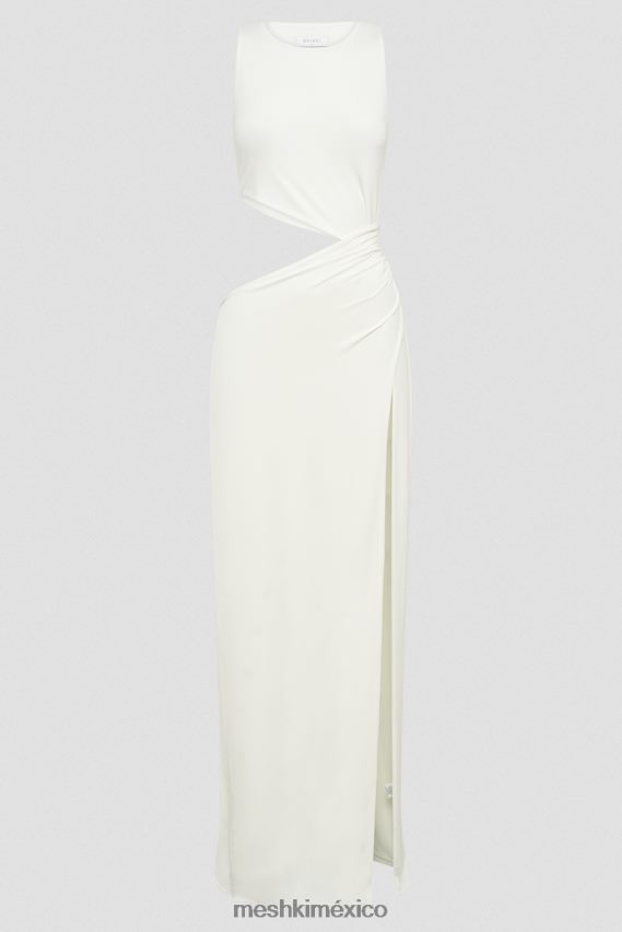 el vienna es un vestido largo lujoso que cuenta con un atractivo escote redondo tanto en la parte delantera como en la trasera. Confeccionado con una mezcla de elastano meshki de primera calidad, ofrece un estiramiento cómodo que elimina la necesidad de cierres, lo que le permite ponérselo y quitárselo sin esfuerzo. también presenta llamativos bordes asimétricos y un meticuloso fruncido en la costura lateral del lado izquierdo del usuario, agregando un toque de detalle intrincado e interés visual. La abertura alta, perfectamente integrada con el forro, realza elegantemente las piernas y proporciona facilidad de movimiento. con un corpiño ajustado que contornea tu figura y una falda de corte recto que cae elegantemente en cascada hasta el suelo.