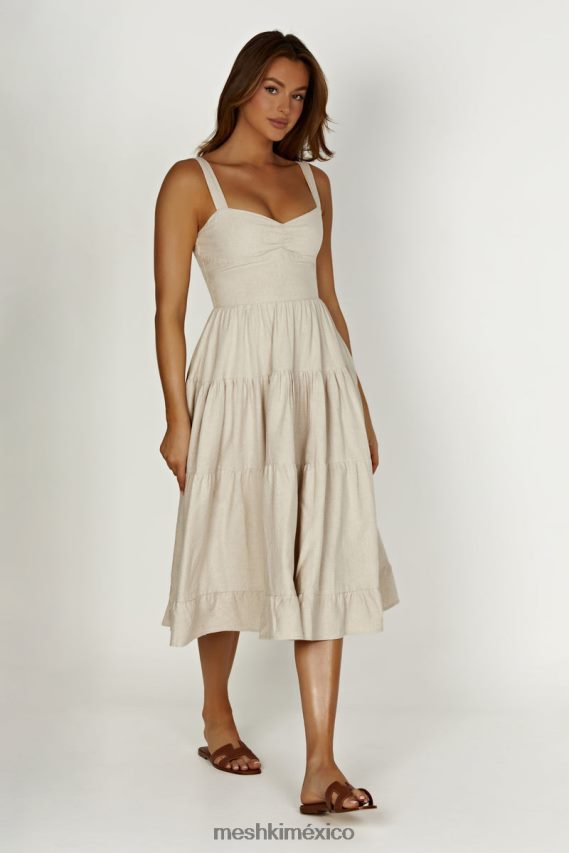 adriana es un vestido midi de lino, sin mangas, con falda de escalones, escote semi-corazón y tirantes bastante anchos. el corpiño superior está forrado con un ligero fruncido en el centro del busto para favorecer la forma de quien lo usa. Las correas de los hombros tienen ajustadores incorporados en la parte posterior para un ajuste más cómodo y personalizado. su falda es holgada, fluida y de tres niveles que emite dulces vibraciones de estilo rústico. Definitivamente un elemento básico del armario para el clima más cálido. Combínalo con brazaletes coloridos y nuestros tacones de piel sintética envolventes Neve.
