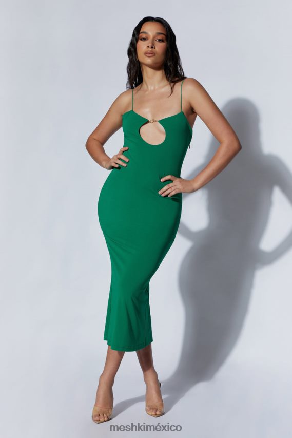 este vestido midi con tirantes finos y abertura central te enamorará de tu figura. ariya es elegante y está confeccionada con suavidad, confeccionada con tela forrada y reforzada con herrajes meshki personalizados para un ajuste perfecto, ¡no ajustado! - mira. una cremallera lateral oculta y tirantes elásticos ayudan a que el vestido se ajuste cómodamente y garantizan que siga siendo fácil de llevar. Los ganchos de oro pálido completan el corte central, creando una ventana estratégica en el cofre que agrega textura al diseño general. es una característica simple que es sutil, divertida y tímida de la mejor manera posible. ¡Deja que aluda a tu lado juguetón y juguetón que no teme bromear! el largo de la falda equilibra el pecho abierto, la espalda baja y los hombros descubiertos, añadiendo bastante versatilidad al conjunto. Para un look de día, combínalo con zapatos planos o sandalias tejidas, cabello suelto y una cazadora o chaqueta ligera. Para la cena, retuerce tu cabello en un moño, agrega algunos rizos y cubre un cabello dorado o plateado.D tu cuello. cambia los zapatos planos por nuestros tacones de cuerda caitlin diamante y luce lista para toda la noche con una cara fresca de maquillaje.