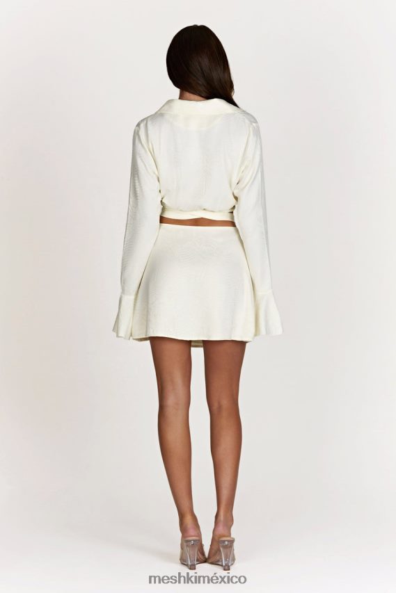 Meshki Annalise minifalda de raso acampanada hueso ropa H48F8H1545