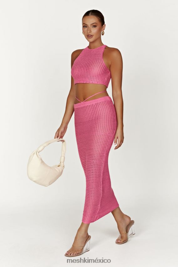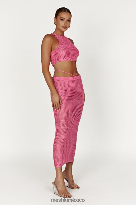 Meshki falda larga de crochet raquel rosa chicle ropa H48F8H1528