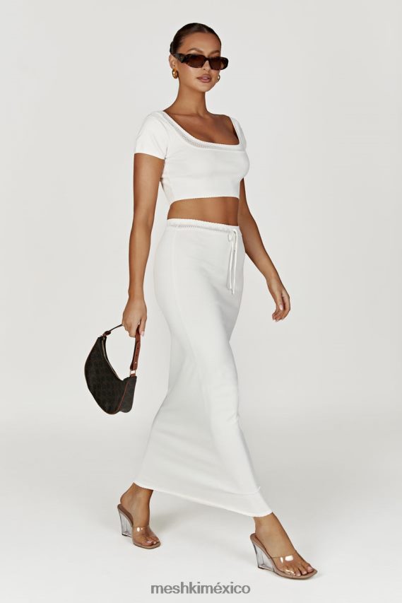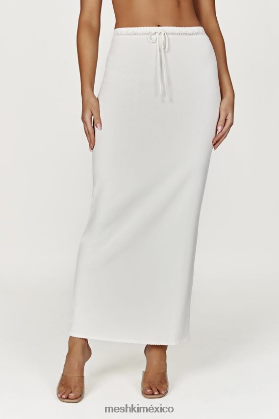 esta es una falda larga suave y sofisticada con delicados bordes festoneados y lazos funcionales y ajustables en la cintura. el corte largo hasta los tobillos, el dobladillo recortado y la silueta holgada y ondulante se prestan a un aura de elegancia sencilla. Combínalo con nuestros tacones envolventes de piel sintética Neve para completar un look suave y recatado.