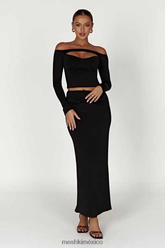 Meshki falda larga retorcida ceri negro ropa H48F8H1353