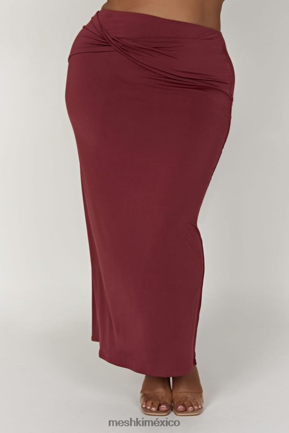 Meshki falda larga retorcida ceri vino ropa H48F8H1354