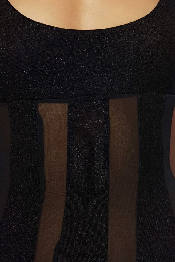 a primera vista, dominique puede parecer modesta y apagada. pero si miras un poco más de cerca, ¡verás la naturaleza juguetona y coqueta brillando! Confeccionada con una mezcla meshki personalizada de tela de jersey brillante y malla suave, no se parece a nada que hayamos lanzado hasta ahora. El cuerpo principal del vestido cuenta con paneles alternos de material opaco y ligeramente transparente. crea una imagen con una textura delicada que es sutilmente atractiva, no llamativa. Los tirantes delgados y entrecruzados y el ajuste suave y sin costuras completan el ambiente tranquilo y majestuoso de Dominique.