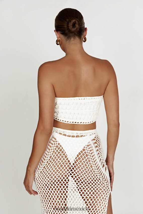 el bandeau de crochet bonnie es un clásico básico para el clima cálido. Sin mangas y sin tirantes, ha sido diseñado para aliviar el calor de las altas temperaturas. La confección de crochet aumenta la transpirabilidad general, lo que la convierte en una opción ideal para tu armario de primavera o verano. combínalo con nuestra falda larga de crochet bonnie para completar el look.