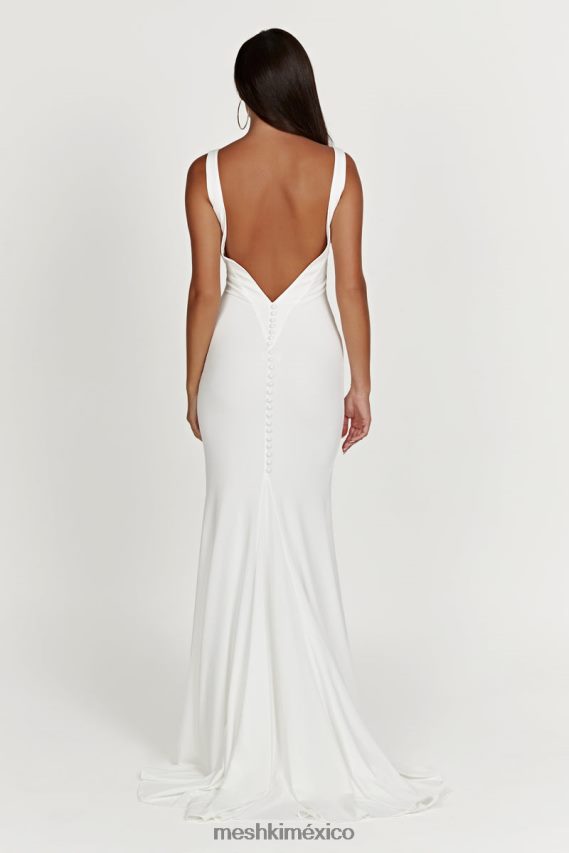el vestido con espalda escotada de Kyla presenta un recatado escote en V en la parte delantera y una espalda baja. Ha sido elaborado a partir de nuestra muy querida fabricación de crepé y se adapta a la forma para celebrar plenamente tu figura. Cuenta con botones no funcionales y una cola de pez en la parte posterior, creando una forma de reloj de arena que favorece a todo tipo de cuerpo. combínalo con accesorios neutros para completar el look.
